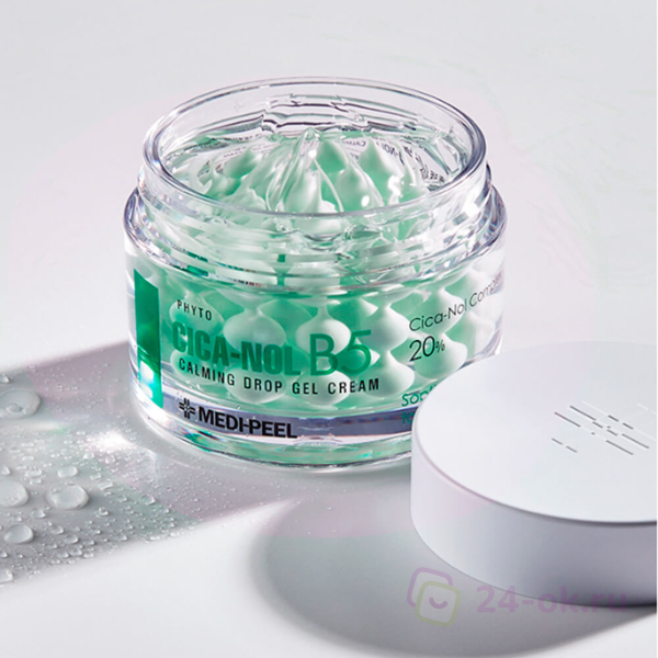 Фито-крем Medi-Peel Phyto CICA-Nol B5 Calming Drop Gel Cream — это увлажняющий гель с 57 зелёными капсулами, который успокаивает, снимает раздражение и покраснение, защищает в течение дня и восстанавливает ночью, даря коже чувство комфорта.