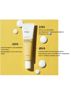 Кислотный крем против черных точек Manyo Blackhead & Pore Cream запускает процессы обновления, выводит загрязнения и отшелушивает ороговевший слой. Регулирует работу сальных желез, предупреждает появление акне и угревой сыпи.