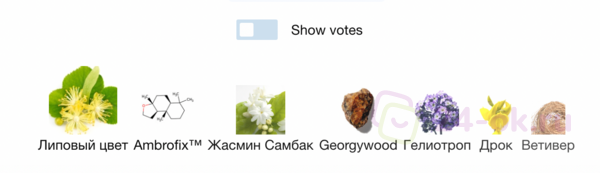 Ноты: липа, апельсиновый цвет, древесные ноты, жасмин, гелиотроп, ветивер, амброксан