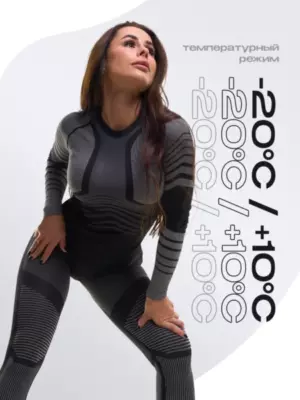 Спортивный термокостюм подходит как большим профессионалам, так и любителям. Анатомический крой как следует защищает горло, поясницу, запястья в холодное время года.Основной материал нательного костюма для женщин - бамбуковое углеволокно. У него отличные впитывающие свойства, что позволяет термокомплекту оставаться сухим и поддерживать комфортную температуру тела человека, а также устранять неприятные запахи. Обычные трикотажные изделия с этим не справляются.