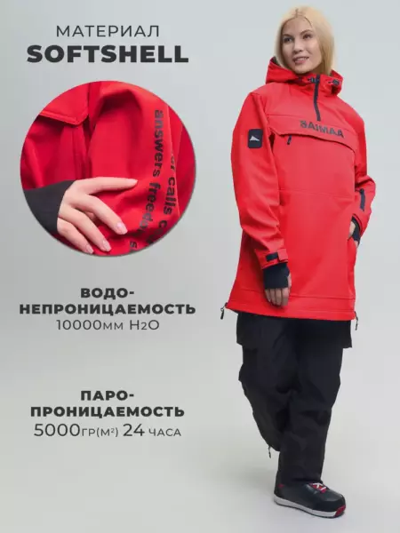 Этот спортивный анорак предоставит тебе максимальный комфорт на горнолыжных склонах или катаясь на сноуборде. Станет незаменимой деталью в твоем туристическом гардеробе, обеспечивая безопасность от холода и влаги. Горные лыжи и туризм - это активности, требующие специализированной экипировки. И она безупречна для таких видов спорта. При его создании использовались только высококачественные материалы, гарантирующие долговечность и надежность. Эта верхняя одежда обеспечит надежную защиту от любых погодных условий благодаря трем слоям соединенных между собой, которые делают ее ветрозащитной и водоотталкивающей. Сверху плащевка с влагозащитной пропиткой, изнутри флис, а между - мембрана. Дышащая ткань - софтшелл, позволяет ей быть устойчивой к износу и длительной эксплуатации, а также легкой по весу. Есть 3 функциональных кармана: один нагрудный с выводом под проводные наушники, внизу кенгуру и один под skipass. Они позволят удобно разместить все необходимые мелочи, которые пригодятся во время катания. Высокая горловина сохраняет тепло и защищает шею от ветра, а объемный капюшон совместим со шлемом и регулируется двумя фиксаторами и резинкой. Влагозащитные молнии специально адаптированы для работы в низких температурах до -25 С. Внутренняя манжета с отверстием для большого пальца и удлиненный фасон помогают предотвратить попадание снега внутрь куртки. Возьми эту стильную модную горнолыжку с собой в свое следующее приключение, и ты будешь готов к любым испытаниям на своем пути.