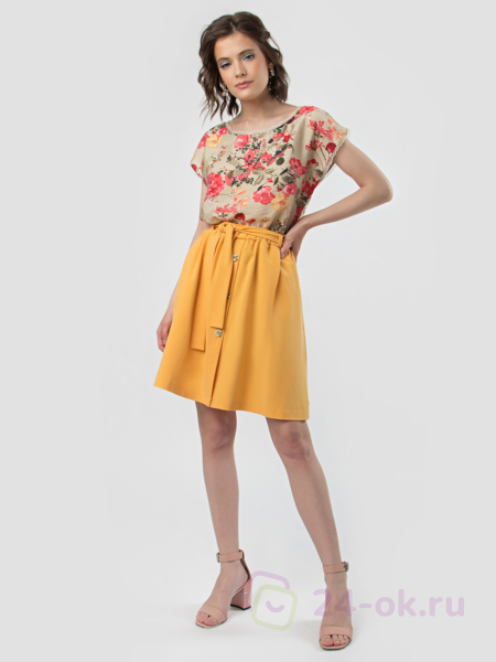 Очаровательная летняя блузка с цветочным принтом. Округлая горловина и проймы украшены кружевом. Отличный вариант для жарких летних дней.