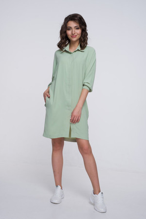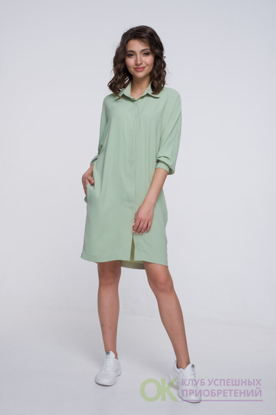 Особенности: Платье-рубашка благородного оттенка. Рукав цельнокроеный, на манжете, 3/4. Рубашечный воротник, застежка потайная на пуговицах.По спинке от воротника по центру изделия заложена и застрочена на 20 см встречная складка. В боковых швах есть карманы. Эта модель будет всегда актуальна в вашем гардеробе, на вечерней прогулке с джинсами или на работе в офисе с лоферами. Пояс в комплекте.