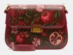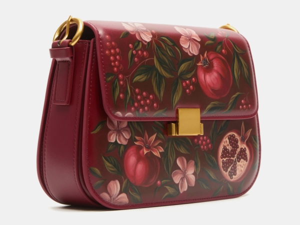 Бордовая кожаная сумка с росписью из натуральной кожи «WK001 Bordo Гранаты»