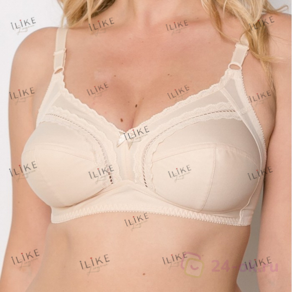 Бюстгальтер из трикотажного и эластичного полотна, без каркасов. Нижняя деталь чашки на х/б подкладке. В чашке использована отделка тесьмой с эффектом «мережки». Комфортная модель, которая отлично поддерживает грудь.