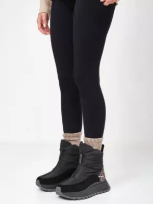 Описание Новинка сезона 2024/2025 года и настоящий хит продаж – это теплые женские зимние ботинки голубого цвета, которые придадут вашему стилю неповторимый шик, идеально подойдут для зимы и морозного демисезона! Изготовлены из высококачественного текстиля, усилены по бортам износостойким искусственным нубуком и натуральной замшей, в таких дутиках гарантированы сухость ног, комфортная температура и никакой сырости и влаги. Подкладка и стелька выполнены из теплой натуральной шерсти, что обеспечат теплом ваши ноги в самую холодную зиму. Толстая высокая подошва у стильных низких ботинок изготовлена из прочного материала, который обеспечивает надежное сцепление с поверхностью и предотвращает скольжение. Для удобства одевания на ногу, обувь имеет молнию. Эта повседневная модель полусапожек представлена в большом выборе размеров и так же подходят на стопу любой полноты: как на узкую, так и на широкую. Прогулочные удобные ботинки - дутыши хорошо сочетаются с различными нарядами и стилями, подчеркнут ваш яркий и модный образ. Удобная посадка на ногу делает наши изделия отличным выбором для любой современной взрослой женщины, молодой девушки или девочки - подростка. Благодаря высокому качеству и прочности, эти стильные дутые ботильоны прослужат вам долго и сохранят свой вид даже после активного использования. Выбирайте комфорт и будьте в тренде вместе с немецким качеством KING BOOTS. ХАРАКТЕРИСТИКИ ТОВАРА: Вид товара: Ботинки женские Цвет: Черный Материал подошвы: ТЭП Материал верха обуви: Текстиль/Натуральная замша/Искуственный нубук Материал подкладки: Натуральная шерсть Материал стельки: Натуральная шерсть Размерный ряд: 36-41 Метод крепления: Молния ФИРМЕННАЯ КОРОБКА Размер обуви Длина стельки, см 36- 23,5 37- 24 38- 24,5 39- 25 40- 25,5 41- 26_x000D_ _x000D_ Высота подошвы, см: 3 см Длина стельки, см: 24 см Цвет: Черный Длина упаковки, см: 32 см Ширина упаковки, см: 28 см Высота упаковки, см: 12 см Вид обуви: Ботинки Материал верха: Текстиль/Натуральная замша/Искуственный нубук Материал стельки: Натуральная шерсть Материал подошвы: Термоэластопласт Вид застежки: Молния Сезон: Зима 2024/2025 Бренд: KING BOOTS Страна бренда: Германия Размер обуви: 36 Высота голенища, см: 14 см Объем голенища, см: 34 см Высота каблука, см: 5 см