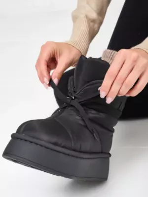 Описание Угги женские зимние с натуральным мехом – это идеальная женская обувь для активных и стильных девушек и женщин. Утепленные полусапожки из нейлона, которые не промокают, не впитывают грязь и отталкивают влагу, можно носить не только в холодную погоду, но и в демисезонный период, подкладка и стелька из натуральной шерсти позволит утеплить ноги, а высокая, нескользящая, сплошная подошва обеспечит легкий шаг и удобство. Короткие дутые уги на устойчивой платформе подойдут на любую ногу, как на полную широкую, так и на узкую. Теплые укороченные дутики на танкетке одинаково оценят как стильные автоледи, так и ваши любимые подростки. Мини дутыши имеют дутый дизайн и снабжены удобными шнурками, которые позволяют регулировать их посадку на ноге. Короткая длина у модных низких меховых дутиков - уг, делает удобными и практичными, особенно для активной жизни на свежем воздухе. Обувь изготовлена из непромокаемого высококачественного материала, благодаря чему ноги останутся сухими даже в самую слякотную погоду. Это особенно важно для осенних прогулок, зимних походов, активного отдыха на природе или для вождения авто. Утепленные полусапожки хорошо сочетаются с куртками и парками, шубами средней длины, пальто, меховыми жакетами. Делитесь своими позитивными отзывами и фото! Выбирайте комфорт и будьте в тренде вместе с немецким качеством KING BOOTS. ХАРАКТЕРИСТИКИ ТОВАРА: Вид товара: Полусапоги женские Цвет: Черный Материал подошвы: ЭВА Материал верха обуви: Текстиль Материал подкладки: Натуральная шерсть Материал стельки: Натуральная шерсть Размерный ряд: 36-41 Метод крепления: Шнуровка ФИРМЕННАЯ КОРОБКА Размер обуви Длина стельки, см 36 24,2 37 24,7 38 25,2 39 25,7 40 26,4 41 27,0_x000D_ _x000D_ Высота подошвы, см: 5 см Длина стельки, см: 24.2 см Цвет: Черный Длина упаковки, см: 32 см Ширина упаковки, см: 30 см Высота упаковки, см: 12 см Вид обуви: Полусапоги Материал верха: Текстиль Материал стельки: Натуральная шерсть Материал подошвы: ЭВА Вид застежки: Шнуровка Сезон: Зима 2024/2025 Бренд: KING BOOTS Страна бренда: Германия Размер обуви: 36 Высота голенища, см: 13 см Объем голенища, см: 37 см Высота каблука, см: 5 см