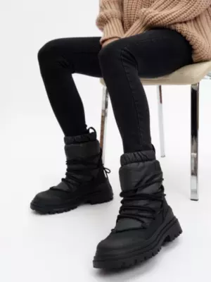 Описание Современные, молодежные теплые дутики с тянущимися шнурками на рифленой средней подошве, без застёжки - отличный выбор для всех модных девушек, подростков, женщин, которые ищут обувь, объединяющую комфорт и стиль. Эти дутыши имеют подкладку и стельку из натуральной шерсти, которая обеспечит отличную теплоизоляцию даже в самые холодные дни. Гибкая морозостойкая, толстая подошва имеет хорошую амортизацию, протекторы дают надежное сцепление со скользкими поверхностями, что особенно важно в гололёд. Прочные полусапожки благодаря качественным материалам и их конструкции прослужат вам долгое время, обладают непромокаемыми, водоотталкивающими свойствами, что делает их классным вариантом для вечерних прогулок или просто для повседневной носки, в любую погоду: демесезоннье, еврозимы. Шнуровка украшает обувь, а также помогают ее крепко фиксировать на ноге. Цветовые варианты модели позволяют выбрать наиболее подходящую пару для вашего гардероба. Они идеальны для зимних прогулок и сочетаются с джинсами, легинсами, пуховиками, куртками. Дутики зимние женские с натуральной шерстью — это модные и практичные полусапожки, которые станут незаменимым аксессуаром в вашем зимнем гардеробе. Делитесь своими позитивными отзывами и фото! Выбирайте комфорт и будьте в тренде вместе с немецким качеством KING BOOTS. ХАРАКТЕРИСТИКИ ТОВАРА: Вид товара: Полусапоги женские Цвет: Черный Материал подошвы: ТПР Материал верха обуви: Текстиль/Искусственный нубук Материал подкладки: Натуральная шерсть Материал стельки: Натуральная шерсть Размерный ряд: 36-41 Метод крепления: Шнуровка ФИРМЕННАЯ КОРОБКА Размер обуви Длина стельки, см 36 24,5 37 25 38 25,5 39 26 40 26,5 41 27_x000D_ _x000D_ Длина стельки, см: 26.5 см Цвет: Черный Длина упаковки, см: 32.5 см Ширина упаковки, см: 30.5 см Высота упаковки, см: 12 см Вид обуви: Сапоги Материал верха: Текстиль/Искусственный нубук Материал стельки: Натуральная шерсть Материал подошвы: Термопластичная резина Вид застежки: Шнуровка Сезон: Зима 2024/2025 Бренд: KING BOOTS Страна бренда: Германия Размер обуви: 40 Высота голенища, см: 19.5 см Ширина стельки в пяточной части, см: 5.7 см Вес, кг: 1.6 кг Ширина стельки в носочной части, см: 8.1 см