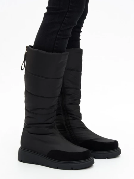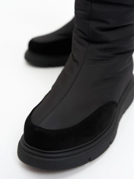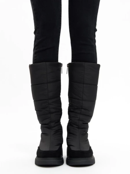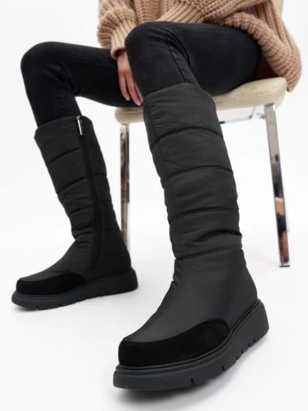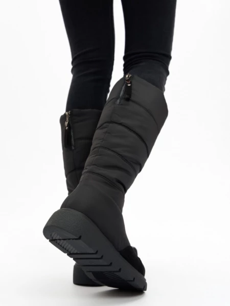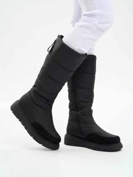 Описание Стильные и теплые зимние сапожки от немецкого бренда KING BOOTS согреют вас в сильные морозы, благодаря высококачественным материалам. Высокий тканевый водоотталкивающий верх обеспечивает надежную защиту от снега и холода, носочная часть усилена износостойким искусственным нубуком. Идеальный вариант как для повседневной носки, так и для активного зимнего отдыха. Для удобства надевания в модели расположена молния, благодаря которой обувь легко снимать и надевать. Подошва имеет специальный зимний протектор, который обеспечивает хорошее сцепление, необходимое для зимних прогулок. Дутые сапоги подходят на любой обхват голени, плотно сидят на ноге, легко снимаются и одеваются. Внутри полусапог подкладка из натуральной шерсти, которая позволяет ногам дышать, сохраняя комфортную температуру, и помогает избежать парникового эффекта. Стельки дутых полусапожек так же из натуральной шерсти, что обеспечивает еще большую защиту от морозов. Одним из преимуществ является и то, что они легкие. Это огромный плюс, ведь небольшой вес позволяет подолгу гулять и даже заниматься в них спортом, не нагружая ноги. В современном понимании эта обувь вне возраста, пола и стиля. Удобные дутые сапожки замечательно смотрятся на девочках подростках, идеальны для активной молодежи, и для удобства ног более возрастной категории женщин. Женские сапоги можно использовать и в мороз, и в слякоть, они не пропускают влагу, устойчивы к загрязнению и реагентам, легкие в уходе - просто протрите их влажной тряпкой, и они будут выглядеть как новые. Современные женские сапоги - базовый элемент зимнего гардероба. Удобная посадка и качественные материалы сделают ношение их комфортным и приятным. Делитесь своими позитивными отзывами и фото! Выбирайте комфорт и будьте в тренде вместе с немецким качеством KING BOOTS. ХАРАКТЕРИСТИКИ ТОВАРА: Вид товара: Полусапоги женские Цвет: Черный Материал подошвы: ТПР Материал верха обуви: Текстиль/Искусственный нубук Материал подкладки: Натуральная шерсть Материал стельки: Натуральная шерсть Размерный ряд: 36-41 Метод крепления: Молния ФИРМЕННАЯ КОРОБКА Размер обуви Длина стельки, см 36 24 37 24,5 38 25 39 25,5 40 26 41 26,5_x000D_ _x000D_ Высота подошвы, см: 2.5 см Длина стельки, см: 24 см Цвет: Черный Длина упаковки, см: 32.5 см Ширина упаковки, см: 28.5 см Высота упаковки, см: 12 см Вид обуви: Сапоги Материал верха: Текстиль/Искусственный нубук Материал стельки: Натуральная шерсть Материал подошвы: Термопластичная резина Вид застежки: Молния Сезон: Зима 2024/2025 Бренд: KING BOOTS Страна бренда: Германия Размер обуви: 36 Высота голенища, см: 35.5 см Объем голенища, см: 39 см Высота каблука, см: 4 см Ширина стельки в пяточной части, см: 5.9 см Вес, кг: 1.25 кг Ширина стельки в носочной части, см: 7.9 см