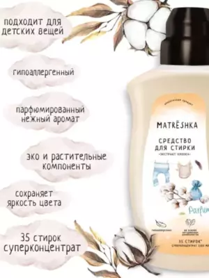 Гель для СТИРКИ Экстракт хлопка 1,1л Матрешка