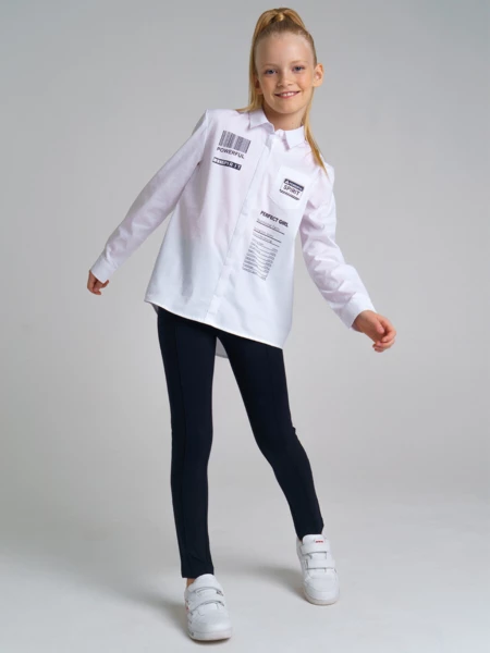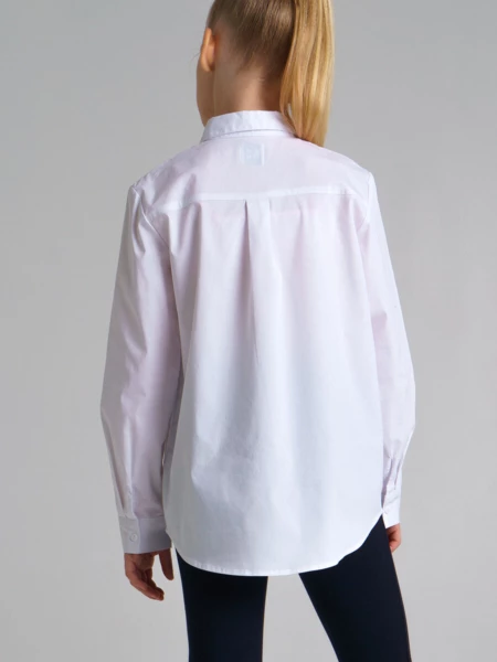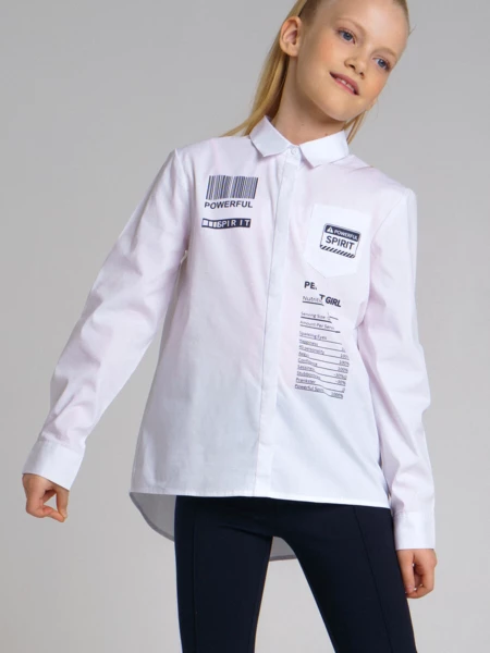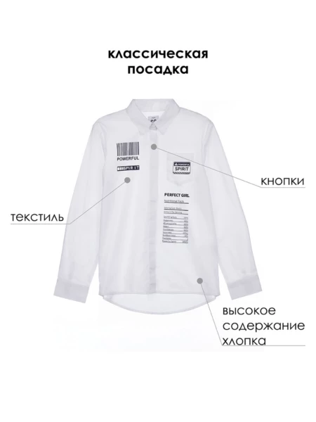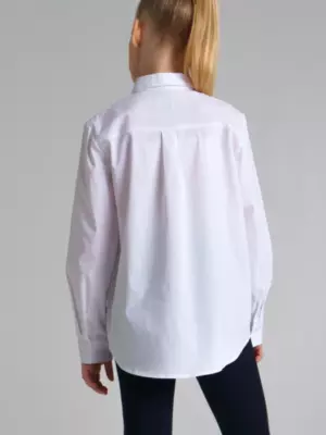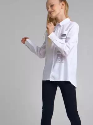 Белая текстильная блузка прямого силуэта для девочки подростка. Школьная блузка с высоким содержанием хлопка на кнопках хорошо держит форму, комфортна в носке и проста в уходе. Рубашка в школу с длинным рукавом и нагрудным карманом разнообразит повседневные школьные образы.
