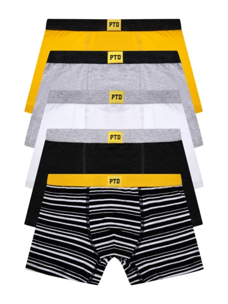 HOME tween boys AW_21-22 белый,жёлтый,серый,темно-серый 93% хлопок, 7% эластан Сет из 5-ти трусов-боксеров из мягкого трикотажного полотна с добавлением эластана. По талии эластичная резинка.