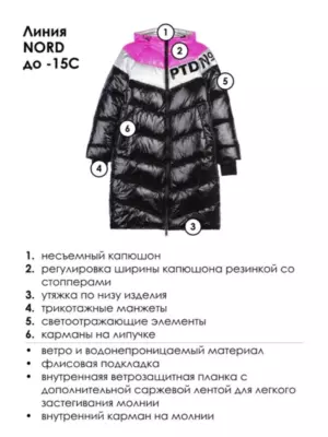 Пальто зимнее из материала c ветро- и водоотталкивающей пропиткой. Температурный режим до -15С. Комбинированная подкладка из флиса и таффеты. Несъемный капюшон, регулируемый шнурком со стопперами. Внутренняя ветрозащитная планка. Внутренняя утяжка по поясу. Регулируемый низ куртки шнурком со стопперами. Внутренний эластичный манжет с отверстием для пальца. Два боковых кармана на липучке. *температурный режим является рекомендованным, необходимо учитывать уровень активности ребенка и многослойность поддевочной одежды (термобелье, флис).