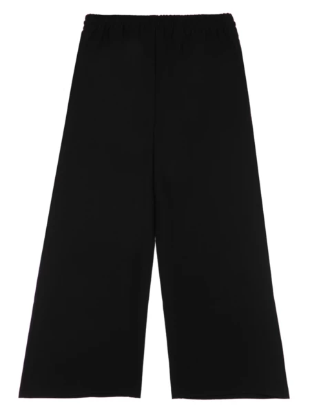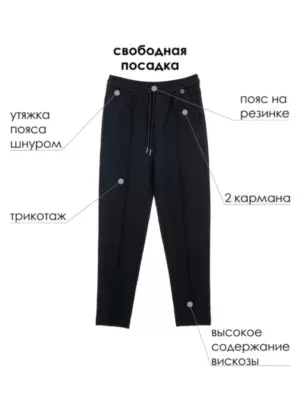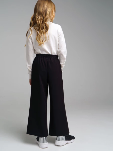 Школьные текстильные брюки-кюлоты для девочки подростка. Кюлоты (штаны) свободного силуэта (свободные) на резинке со шнурком идеально подойдут в школу. Классические черные брюки выполнены из ткани non-iron, которая не требует глажки после стирки. Брюки для школы имеют функциональные карманы в боковых швах, что очень удобно для школьницы.