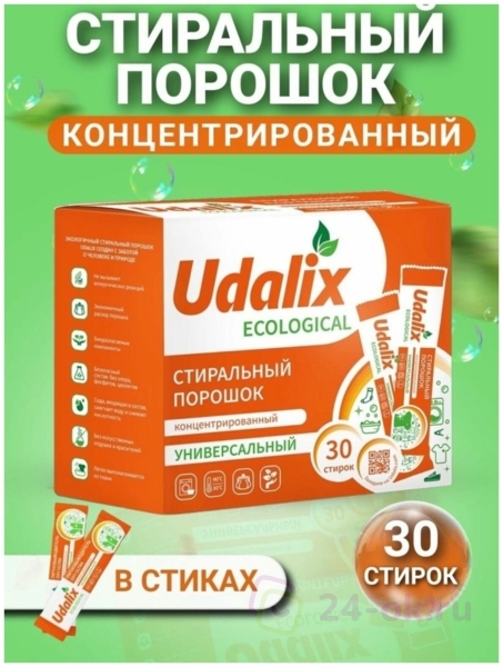 Udalix Универсальный стиральный порошок для цветных и белых вещей, гипоаллергенный, экологичный 30 стиков