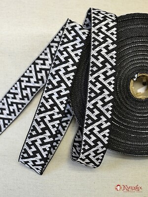 Жак.лента 32мм Белый славянский оберег на черном