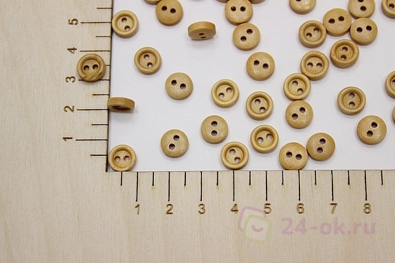 Пуговица светло-коричневое дерево, 8мм, 2 отверстия