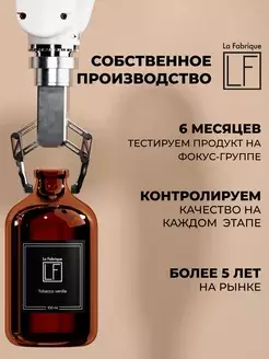 Ноты табака придают аромату мужественность и серьезность, в то время как ваниль добавляет легкость и сладость, делая его универсальным и подходящим для всех. Изготовленный из качественных и натуральных компонентов, продукт La Fabrique гарантирует долговременное и безопасное использование. Благодаря стильному дизайну упаковки, этот аромат также станет замечательным подарком для ваших близких, подчеркивая их индивидуальность и вкус.