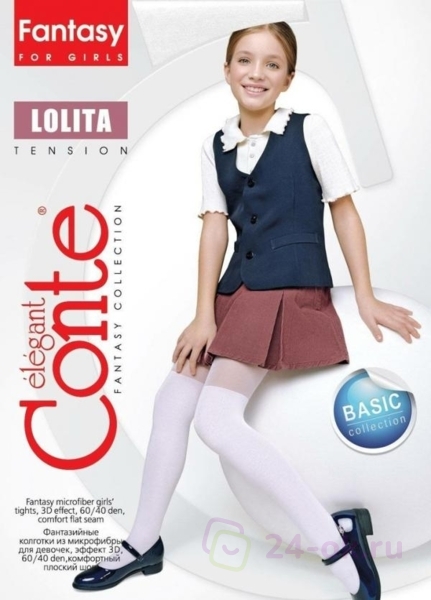 22С-3СП, CONTE LOLITA Колготки из микрофибры с имитацией гольфинов , BIANCO, рис. LOLITA *