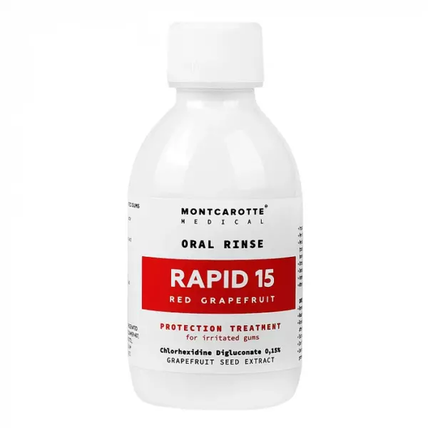 * Ополаскиватель Montcarotte RAPID15 Красный грейпфрут, хлоргексидин 0,15%