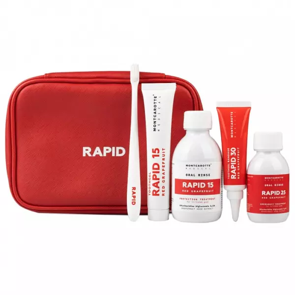 Набор RAPID для профилактики воспалений в полости рта до и после операций, - это клинически проверенная комбинация антибактериальных препаратов, для профилактики воспалений в полости рта. Антибактериальная серия препаратов RAPID от MontCarotte Medical на основе комбинации Хлоргексидина диглюконата стабильной концентрации, Инозитола и молекулярного защитного матрикса c высокой степенью адгезии предназначены для профилактики воспалений мягких тканей полости рта. Сочетание эффективной активности ХГ и дополнительных ингредиентов в борьбе с образованием зубного налета, обеспечивают максимально комфортное и приятное использование зубной пасты, ополаскивателя и геля, до и после стоматологических процедур.