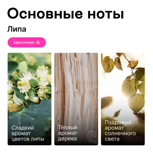 Ароматы наших продуктов не имеют классического деления на «верхние», «средние» и «базовые» ноты. Испаряясь, аромат будет одинаково звучать в любой момент: когда вы только открыли флакон или спустя время. Поэтому их так легко выбирать и сочетать между собой!