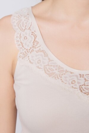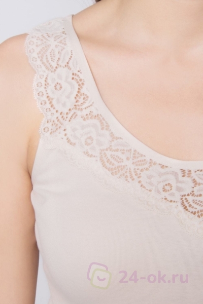 Футболка с оригинальным мягким кружевом по горловине изделия.