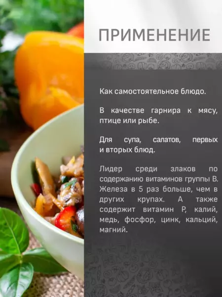 - Лидер среди злаков по содержанию витаминов группы В.