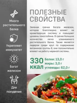 Если вы следите за фигурой, предпочитаете экологически чистые продукты или просто хотите сохранить молодость и здоровье на долгие годы, зеленая гречка займет достойное место в вашем рационе.