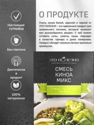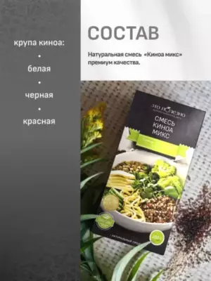 Теперь все разнообразие киноа под маркой POLEZZNO! Белая, красная, черная и микс трех видов киноа для полноты кулинарных экспериментов! Микс из киноа, пожалуй, самый нарядный вариант этой крупы. Пусть вас не пугает немного разное время ее приготовления: белая и красная киноа отлично держат форму при варке, поэтому варить микс из киноа нужно около 25 минут, ориентируясь на время приготовления черной ее разновидности.