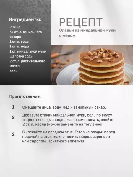 - Оладьи из миндальной муки с мёдом