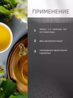 Применение: заварите 1-2 пакетика чая на чашку кипятка в течение 5 минут.
