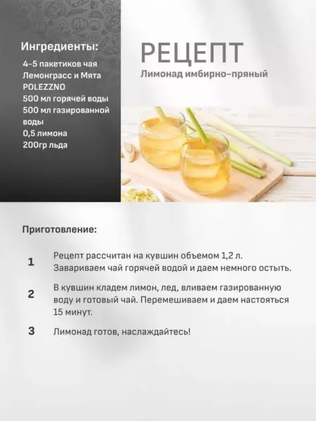 Идеальный букет по вкусу и по воздействию на организм человека – лемонграсс и мята! Душистый, с нотами лимона, лайма и насыщенным мятным послевкусием. Именно такой напиток позволит пережить все стрессы напряженного рабочего дня и оставить их в прошлом после вечернего чаепития.