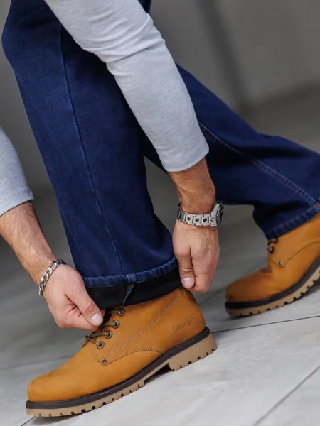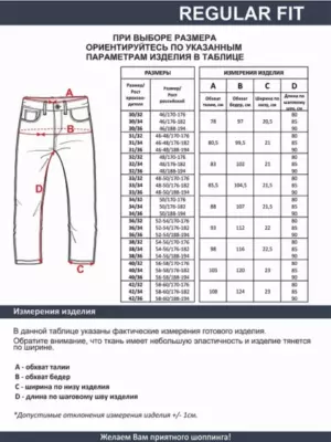 Описание Стиль и комфорт для холодной погоды ! Незаменимы для прогулок на открытом воздухе в холодные зимние дни !!! Погрузитесь в уют и стиль с нашими мужскими утепленными джинсами Regular Fit! Эти джинсы созданы для тех, кто ценит комфорт и практичность в каждодневной жизни. - Утепленная подкладка: Слой специального трикотажного утеплителя( флис) с мягким, шелковистым и приятным на ощупь ворсом сохраняет тепло в холода, позволяя вам оставаться активным и уверенным в себе. - Классический Regular Fit: Удобный прямой крой со слегка зауженными к низу штанинами обеспечивает свободу движений и подходит для различных стилей - от повседневного до более строгого. - Материал: Изготовлены из слабоэластичной утепленной ткани denim comfort stretch, которая гарантирует тепло и приятные тактильные ощущения в процессе носки. - Дизайн: Классические джинсы с пятью карманами Легко комбинируются с любыми, свитерами или куртками, создавая стильные образы на каждый день. - Цвет: Темно-синий цвет - темная стирка с потёртостями только по швам. Эти джинсы станут отличным выбором для ежедневного ношения, сохраняя вас в тепле и комфорте в любой ситуации. Рекомендации по уходу * * * * * Стирать в стиральной машине при температуре 30° Не использовать отбеливатель Ручная стирка при температуре 30° Гладить при минимальной температуре Химчистка недопустима