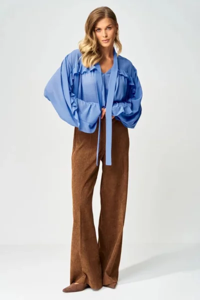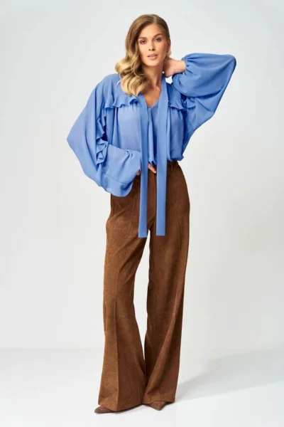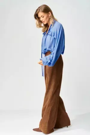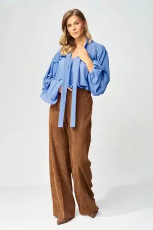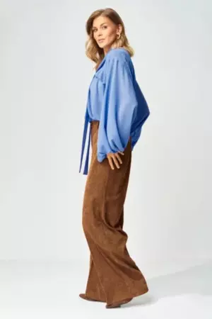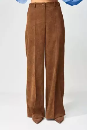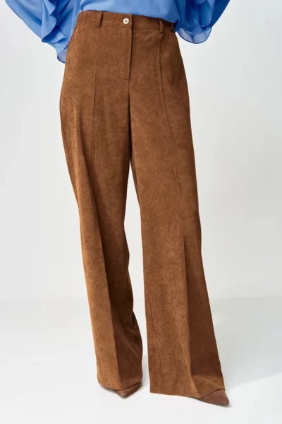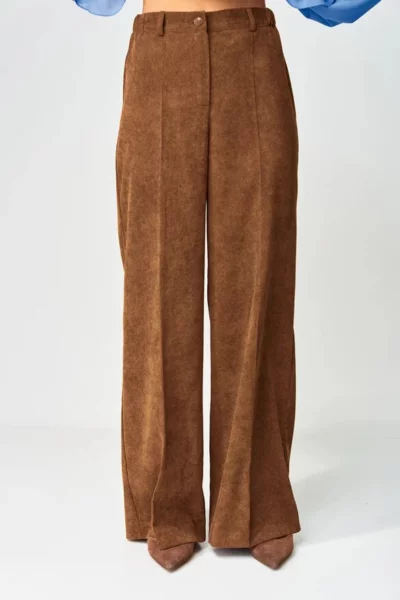 Брюки палаццо с притачным поясом из мягкой вельветовой ткани Gizart