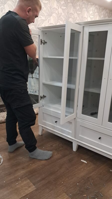 Внизу 2 выдвижных ящика на направляющих бокового монтажа частичного выдвижения. • Размер фасада ящика - 565х222 мм. • Вверху 2 отделения за 4 распашными дверями, двери рамочные со стекловставкой. • За дверями по 2 стационарные полки из ЛДСП. • Петли с доводчиком, угол открывания 1000. • Соединение корпуса выполнено под углом 45 °. • Максимальная нагрузка на ящик 10 кг, на полку 15 кг, на крышку шкафа - 10 кг. • Расстояние от пола до цокольной планки шкафа 100 мм, опоры ППУ окрашенные эмалью. • Шкаф крепить к стене с помощью угловой подвески, подвеска в комплекте. • Крепеж к стене приобретается дополнительно