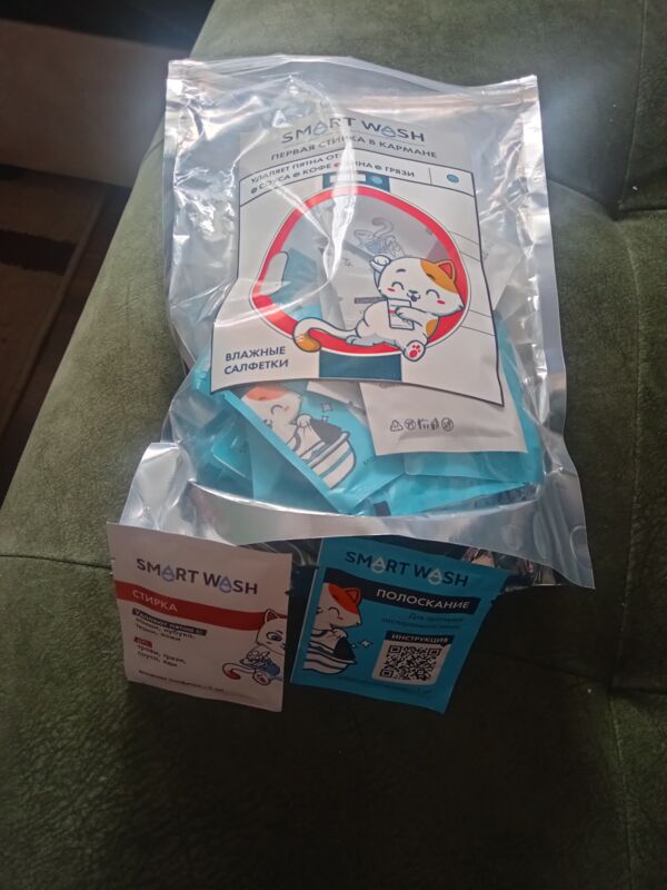 1+1=3 БОЛЬШАЯ ПАЧКА Smart Wash Инновационные салфетки для моментального удаления пятен
