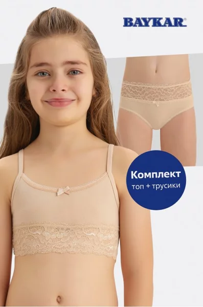 Кружевной комплект идеален на каждый день. Подростковое белье для девочки подойдет для походов в детский сад, на прогулки, в школу, в нем удобно спать. Качественное нижнее белье на девочку сохраняет форму после частых стирок, не скатывается.