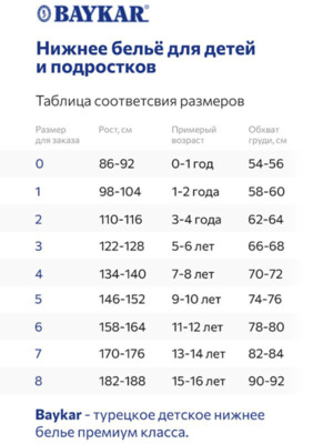 Широкий размерный ряд позволяет подобрать комплект нижнего белья для детей 5-14 лет.