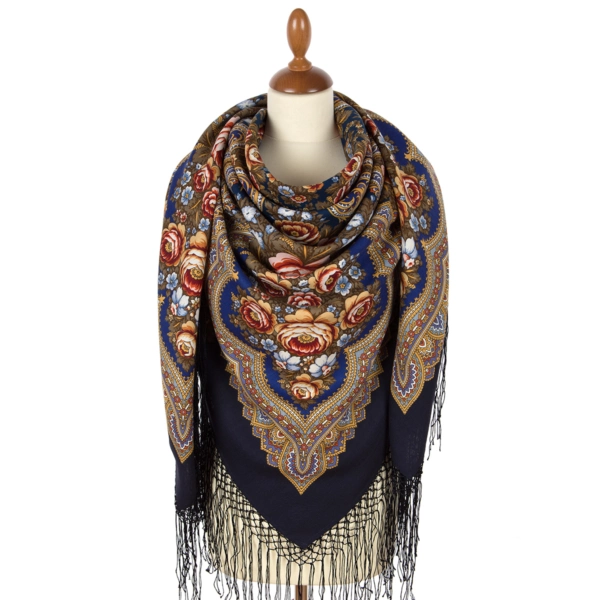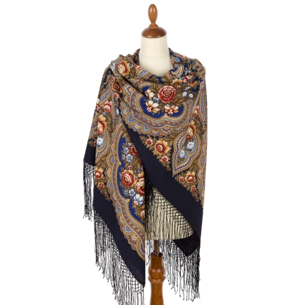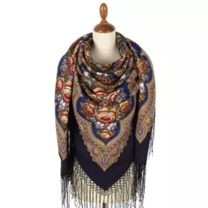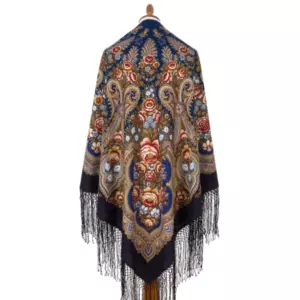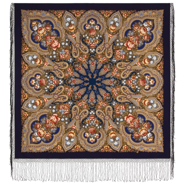 Шаль из уплотненной шерстяной ткани с шелковой бахромой "Лето в Павлове", 862-14, 148х148см
