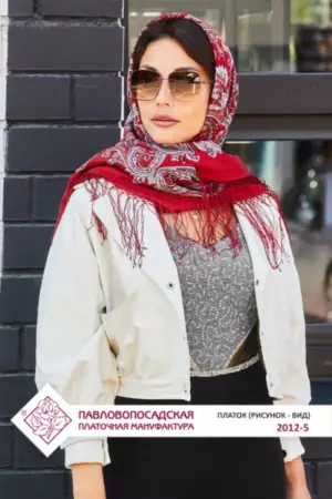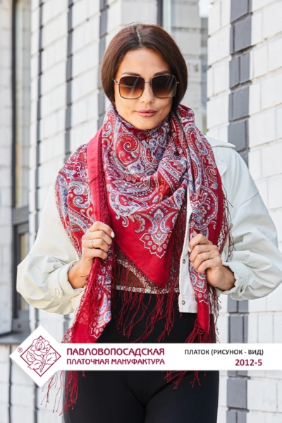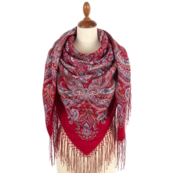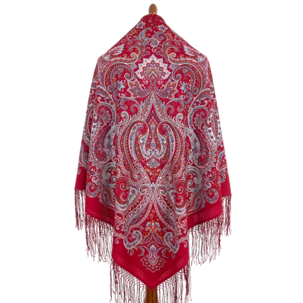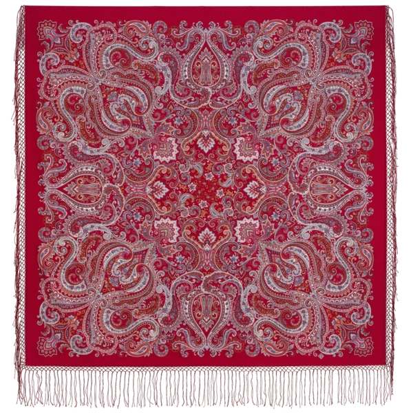 Платок шерстяной с шелковой вязаной бахромой "Сказочное путешествие", 2012-5, 135х135 см