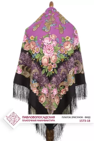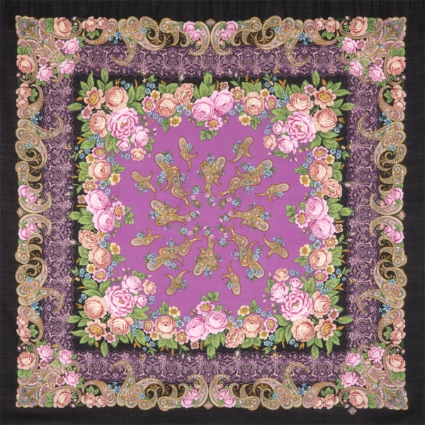Платок шерстяной с шелковой бахромой "Сказка на ночь", 1573-18, 125х125 см