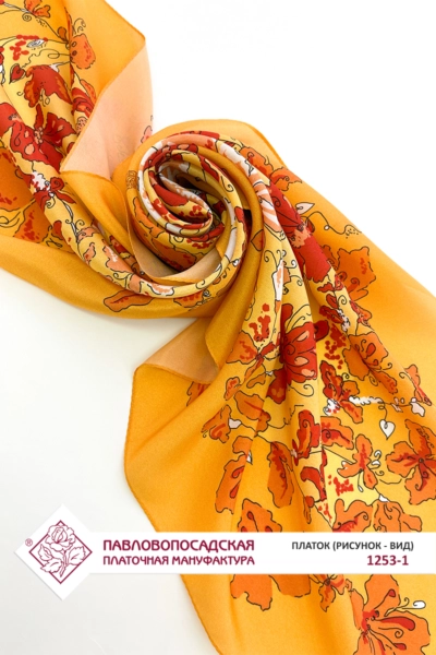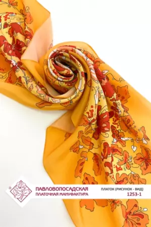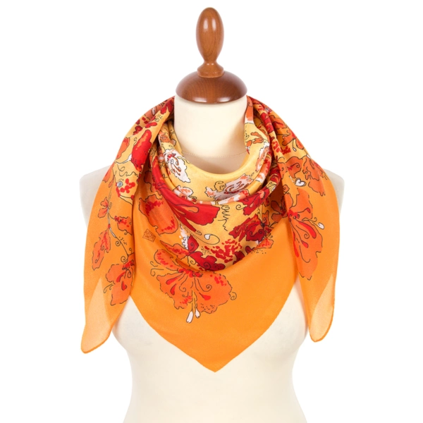 Платок шелковый (крепдешин) "Цветочные грезы", 1253-1, 89х89 см