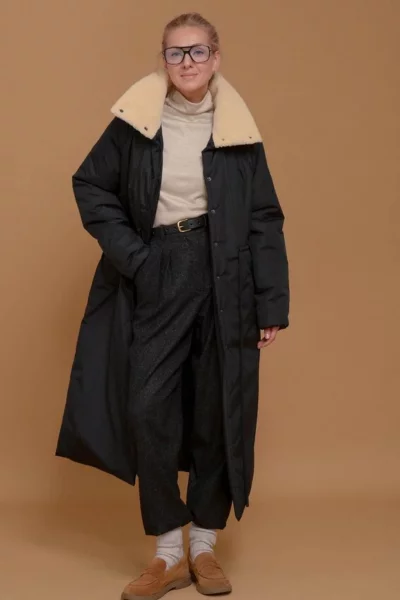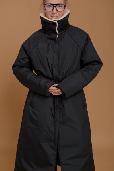 Невероятно легкое и одновременно теплое и уютное пальто.С ним можно носить любимые платья даже в морозы.Плотная ткань не пропускает ветер и влагу, высокий воротник-стойка с мягким итальянским мехом и манжеты на резинке помогают сберечь тепло. С помощью кулиски на поясе можно сделать силуэт прямым или подчеркнуть талию.Утеплитель Isosoft хорошо сохраняет тепло и не утяжеляет изделие. Подкладочная ткань - из приятного к коже твила. Рукав реглан смягчает линию плеча и обеспечивает свободу движений.Застегивается на кнопки.Сезон - осень/зима, температурный режим: до -20 °C (зависит от личных ощущений). Длина изделия по спинке 114 см.