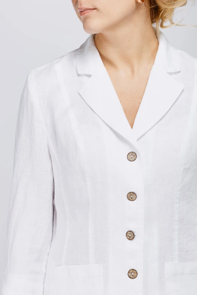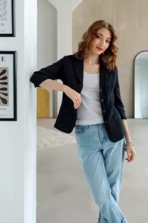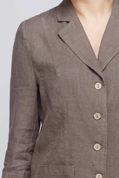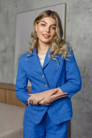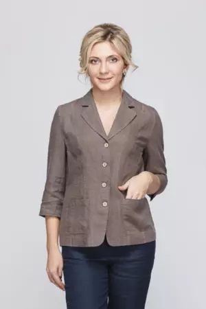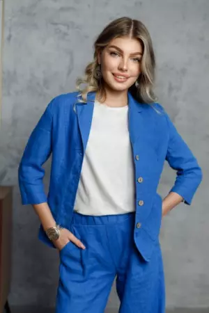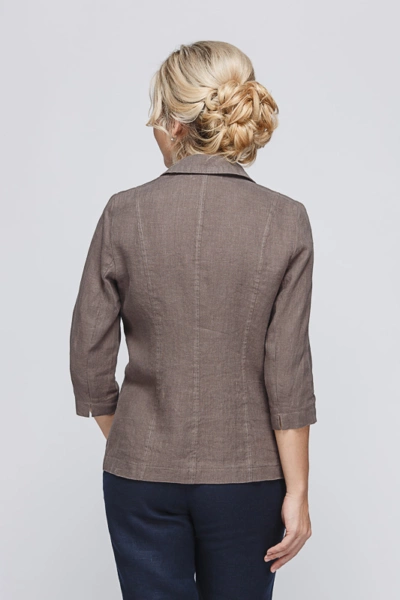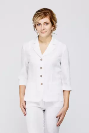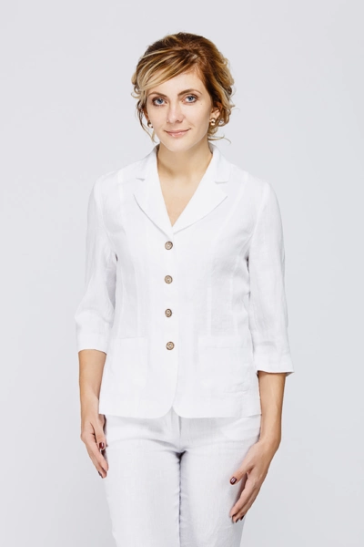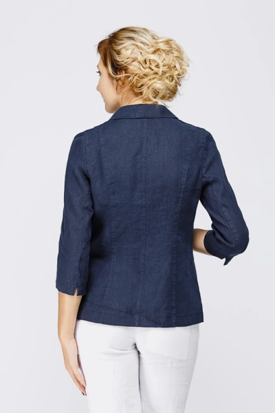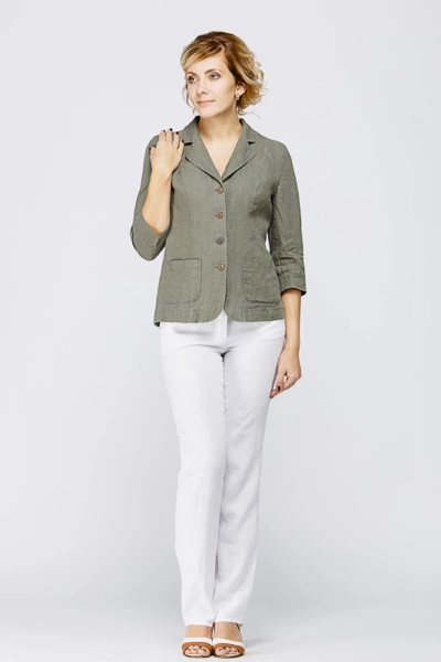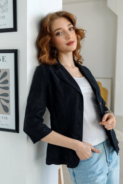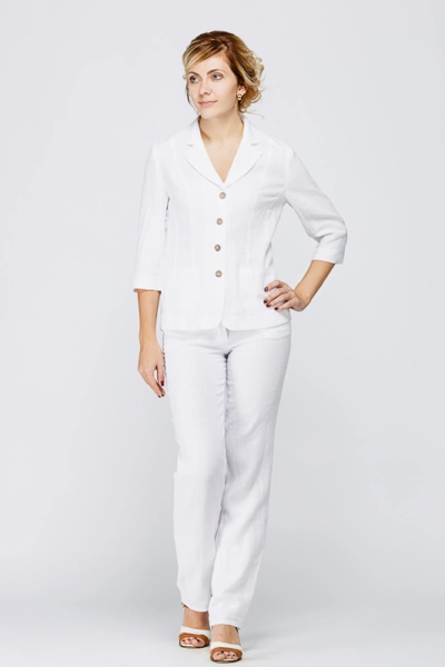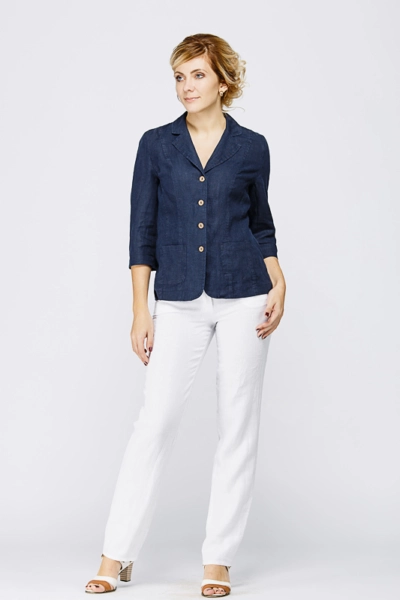 Прохладным вечером или в пасмурный летний день дополнить любой стиль, как классический, так и романтический поможет летний жакет. В этой модели ничего лишнего, только по существу: прилегающий силуэт, рукав ¾ и классический отложной воротник.