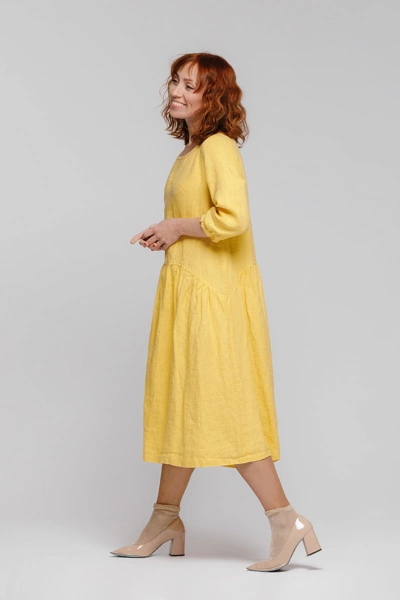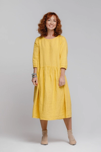 Наша одежда из льна призвана подчёркивать великолепие женщин! Незаурядное кокетство выказывает представленная модель платья в стиле Бохо. Складки по юбке и рукав ¾, присобранный на эластичную манжету, выказывают игривое настроение, а прямой крой так и провоцирует на свободу самовыражения.
