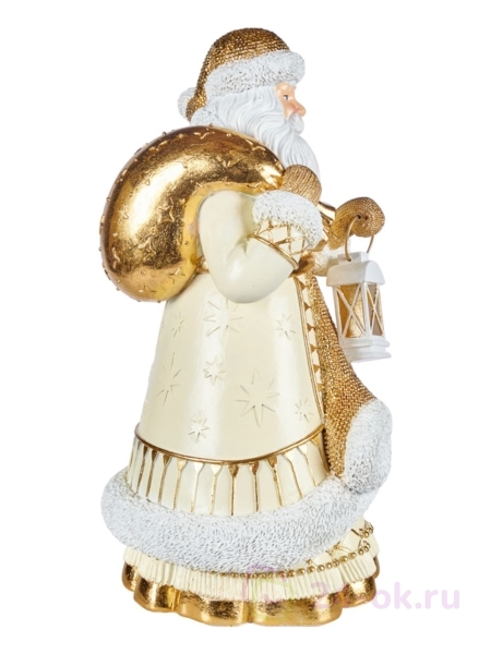 Фигурка Деда Мороза станет настоящим украшением новогоднего интерьера. Она выполнена из полирезины, а облик главного новогоднего персонажа повторен в мельчайших деталях. Есть у него и шубка с красивой опушкой, и шапка, и белоснежная борода. В руках он держит фонарь и мешок полный подарков. У Деда Мороза добрые глаза и румяные щечки. Такая фигурка может служить и отличным вариантом новогоднего подарка для взрослых и детей.