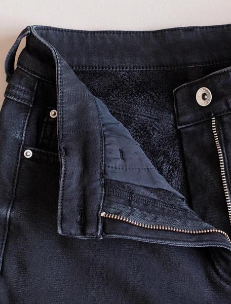 Джинсы-трубы выполнены из эластичного денима плотностью 16.6 oz. Внутренняя сторона изделия утепленная мягким длинноворсовым флисом обеспечит тепло, комфорт и защиту от холода. Свободный силуэт не сковывает движений и подходит для любой фигуры. Лучший вариант для зимнего периода, когда хочется выдержать стиль и практичность.