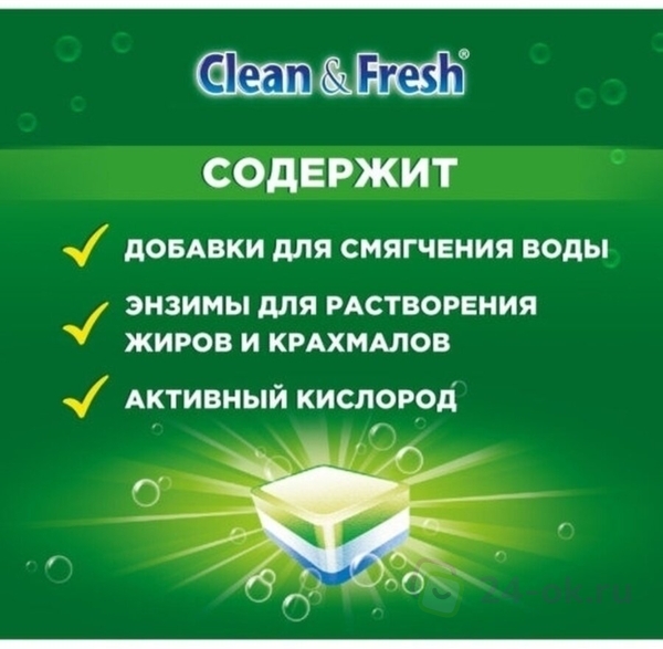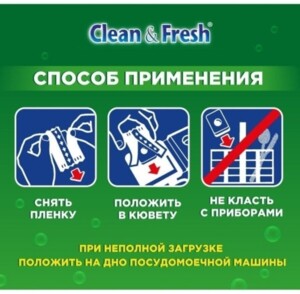 На качество мытья посуды в посудомоечной машине, помимо таблеток, влияют многие факторы, поэтому обращайте, пожалуйста, внимание на правильную расстановку посуду, выбирайте соответствующий режим мойки, следите за состоянием фильтров и разбрызгивателей, регулярно используйте очиститель Clean & Fresh , а при жесткой воде не забывайте про соль Clean & Fresh для посудомоечной машины.