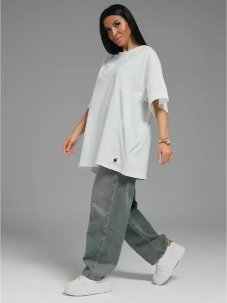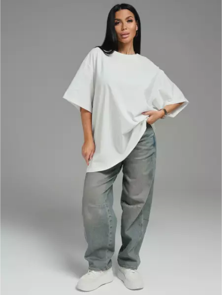 Ряд: 44-66, Состав: 100% х/б, Ткань: кулирка, Цвет: молочный Описание Футболка oversize с коротким втачным рукавом.